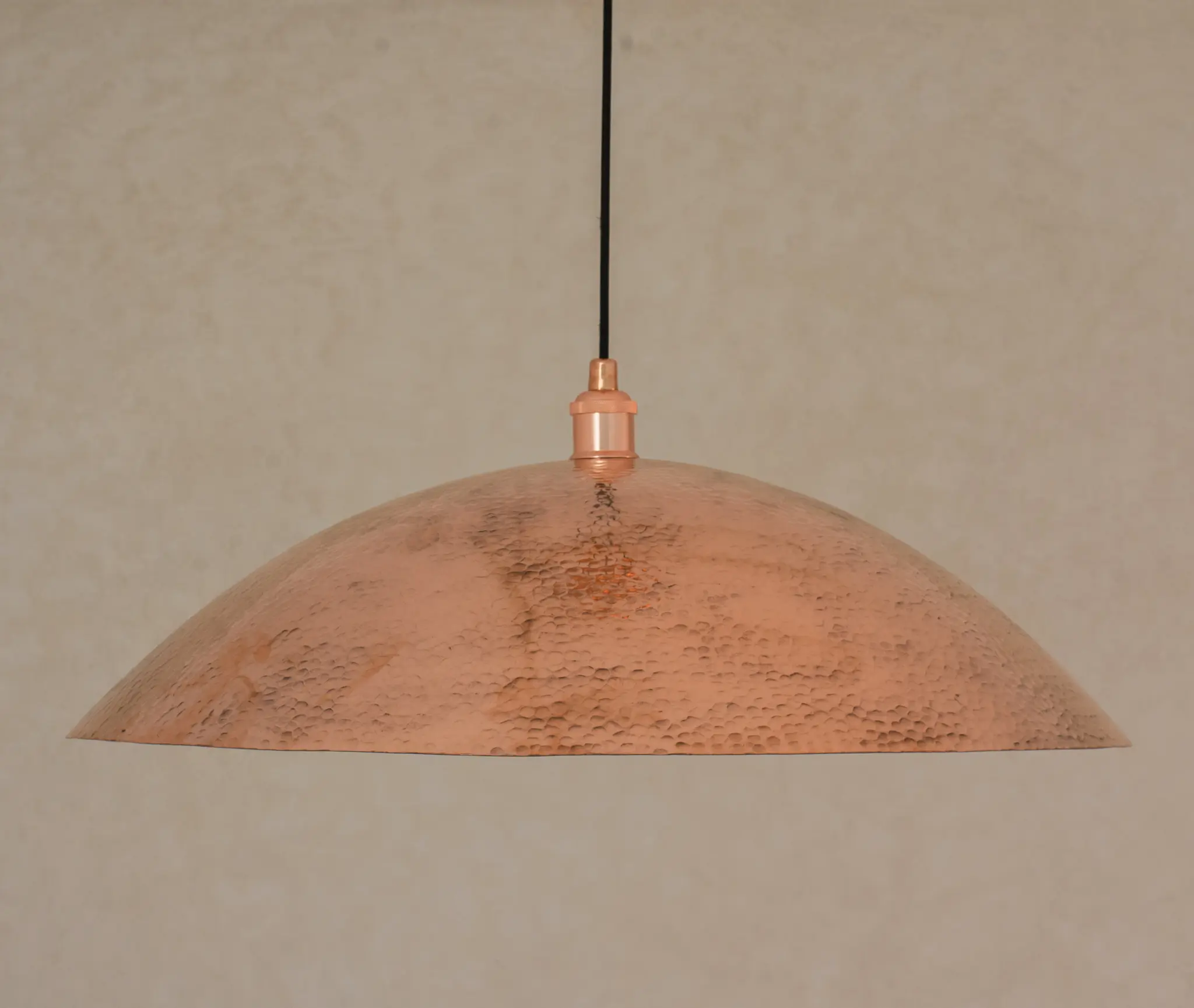 Every Copper Light Pendant begins as a sheet of responsibly-sourced, certified solid copper. Our skilled artisans hand-hammer each dome individually, creating the distinctive texture that catches and reflects light in ever-changing ways.