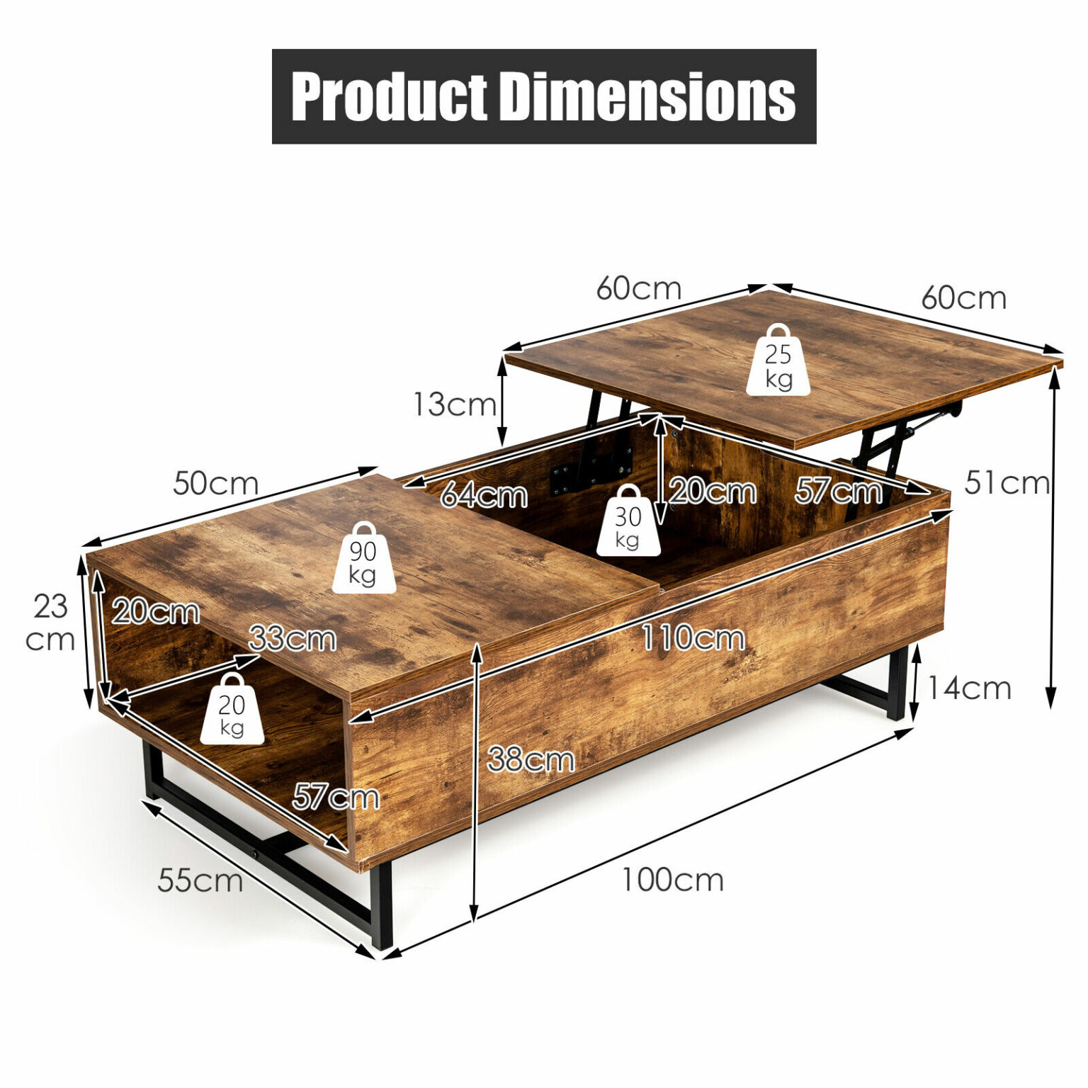 Maximum Weight of Lift Tabletop: 25kg